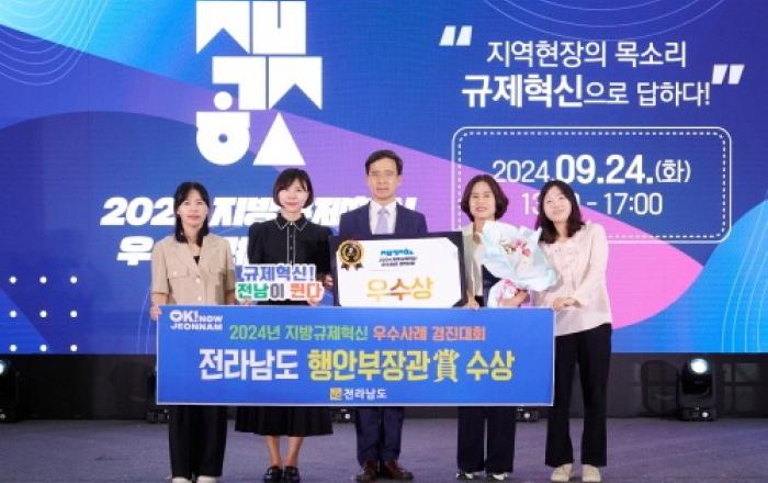 전라남도는 대구 EXCO에서 열린 행정안전부의 ‘2024년 지방규제혁신 우수사례 경진대회’에서 우수상(행안부장관상)을 수상했다고 밝혔다.이번 대회는 전국 17개 시·도에서 제출된 총 105건의 규제 개선 사례 중, 예선·교차심사, 전문가 심사를 거쳐 상위 10건이 본