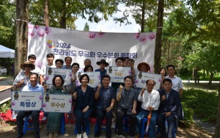 전라남도산림연구원이 7일 나라꽃 무궁화의 우수성을 널리 알리고 나라사랑 정신을 함양하기 위해 개최한 ‘2024년 전라남도 무궁화 우수 분화 품평회’에서 단체부문 해남군, 개인부문 해남 박소영 씨가 대상을 수상했다.이번 품평회는 전남지역 무궁화 품종의 다양성과 심미적