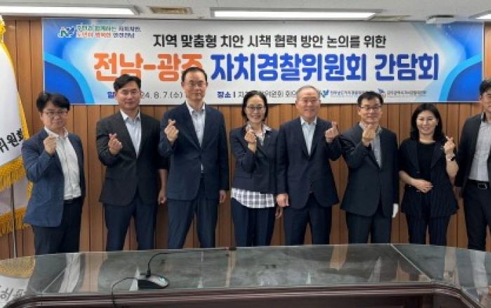 전라남도자치경찰위원회는 7일 사무국 회의실에서 광주자치경찰위원회(위원장 안진)와 자치경찰사무 상생협력 소통 간담회를 열어 지역 주민 중심 자치치안 실현에 힘을 모으기로 했다.이날 간담회는 지난 6월 광주 개최 이후 두 번째다. 앞으로도 우수 치안정보 공유와 벤치마킹,