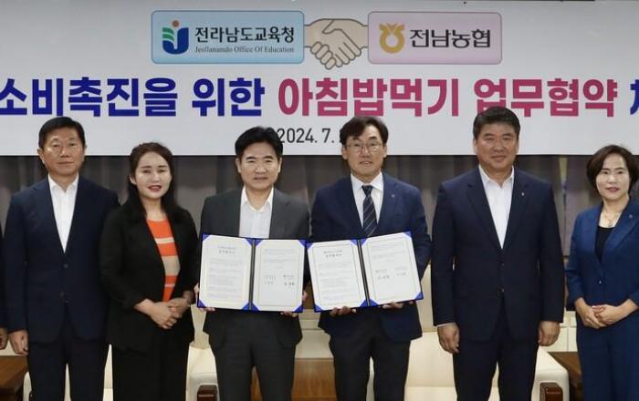 전라남도교육청과 전남농협(본부장 박종탁)이 29일 청사 비즈니스실에서 ‘쌀 소비촉진을 위한 아침밥 먹기’ 업무협약을 체결했다.이 협약을 통해 두 기관은 학생들에게 아침밥을 챙겨 먹는 건강한 식습관에 대한 인식을 높이고, 지역 쌀 소비를 확대해 쌀 가공 산업 육성 및 농
