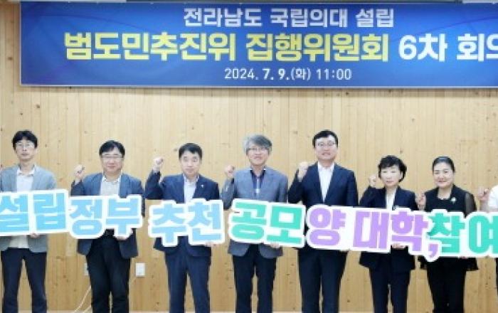 전남도민 대표로 구성된 전라남도 국립의대 설립 범도민추진위원회가 목포대와 순천대에, 전남도 정부 추천 공모에 참여해 선의의 경쟁을 펼칠 것을 촉구했다.범도민추진위원회는 9일 전남도산림연구원에서 집행위원회 6차회의를 열어 ‘양 대학 정부 추천 의대설립 공모 참여 건의문