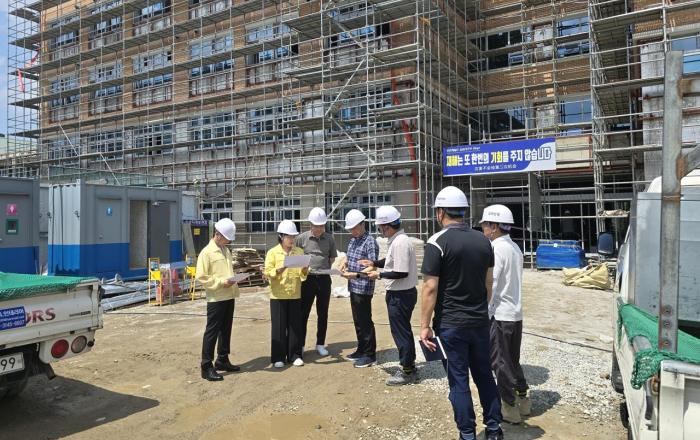 광주동부교육지원청은 지난 3일 정성숙 교육장을 중심으로 광주수창초 그린스마트 미래학교 조성공사 현장을 방문해 재해예방 점검을 실시했다.이번 점검은 장마철 집중호우에 따른 공사장 사고를 예방하기 위해 마련했다.주요 점검 사항은 ▲가배수로 청소 및 정비 상태 ▲가설물 안전