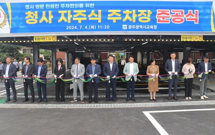 광주시교육청에 148면 규모의 자주식 주차장이 건립돼 주차난에 숨통이 트이게 됐다.시교육청은 2층 3단 철골구조로 주차이용 가능대수를 확인할 수 있는 시스템을 갖춘 자주식 주차장 건립을 완료하고 4일 준공식을 개최했다.시교육청은 직원수만 500여 명에 달하는데다 하루