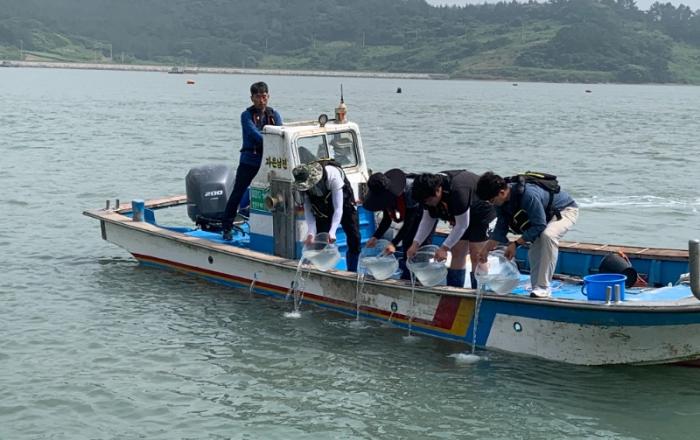 전라남도해양수산과학원은 수산자원 회복과 어업인 소득증대를 위해 19일 어린 꼬막과 갑오징어를 방류했다고 밝혔다.전남해양수산과학원 장흥지원은 급감하는 꼬막 자원 회복을 위해 자체 생산한 어린 꼬막 20만 마리를 드론을 활용해 장흥 해역에 방류했다. ‘참꼬막’으로 잘 알려