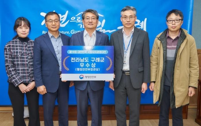 전남 구례군은 11월 16일 제19회 대한민국 지방자치 경영대전에서 지역경제 분야 우수상을 받았다고 밝혔다. 행정안전부와 한국일보는 전국 지자체의 우수시책을 공모·선정하고 전국에 확산하기 위해 대한민국 지방자치 경영대전을 매년 주최하고 있다. 올해에는 행정안전부