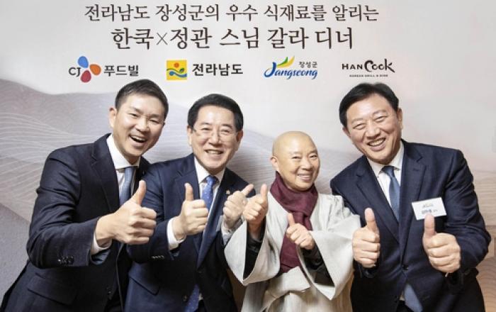 장성군이 서울의 중심에서 우수 식재료를 선보여 이목을 끌었다. 군은 지난 28일 남산 엔(N)서울타워 전망대 3층 한쿡 레스토랑에서 씨제이(CJ)푸드빌과 함께 '지역상생 협력 갈라디너' 행사를 가졌다. 갈라디너는 잘 차려진 저녁 정찬을 의미한다. 김한종 장성군수