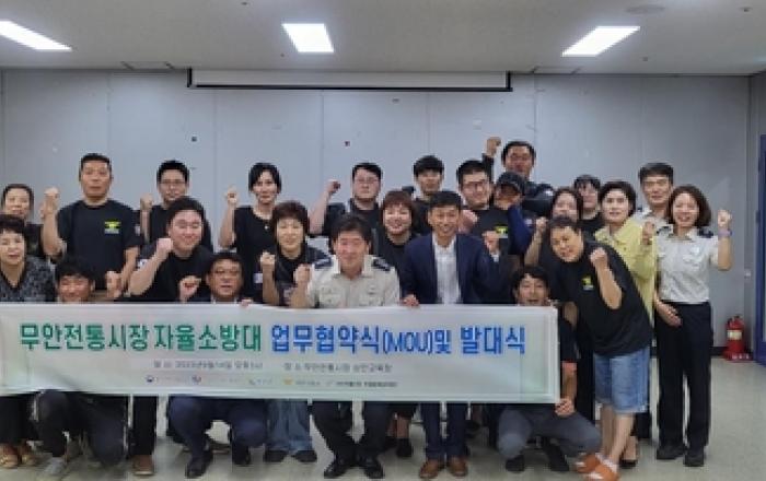 전남 무안군은 지난 14일 무안전통시장에서 무안군, 무안소방서, 전통시장상인회 등 관계자 30여명이 참석한 가운데 소방안전을 위한 업무협약 및 무안전통시장 자율소방대 발대식을 개최했다. 이번 발대식은 상인회 중심의 화재예방 강화와 민관 협력 화재대응 전략시스템을 구