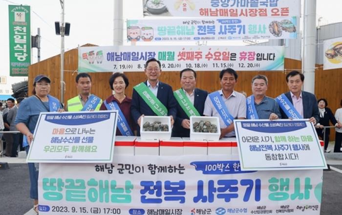 해남군은 수산물 소비 감소와 가격하락으로 어려움을 겪고 있는 전복 양식 어가를 지원하기 위해 실시한 전복 소비촉진 캠페인이 성황리에 종료됐다. 군은 8월말부터 일주일간 땅끝해남 전복 사주기 행사를 펼친 결과 약 1.5톤의 판매실적을 올렸다. 이번 행사는 군 공직자