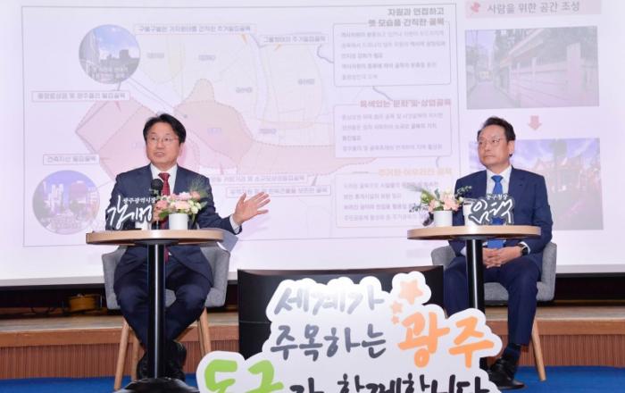 강기정 광주광역시장은 18일 동구청에서 ‘자치구 소통의 날’을 열고 “시민이 기쁘고 즐거운 광주를 만들기 위해 온힘을 다하겠다”고 밝혔다.강 시장은 이날 동구 주민 300여명과 시·구정 현안에 대해 이야기했다. 특히 동구는 원도심으로 광주에서 가장 많은 도시재생사업이