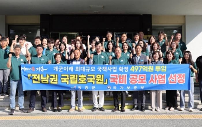 장흥군이 '전남 국립호국원' 유치에 성공했다. 국가보훈부는 전남 국립호국원 조성부지로 장흥군 금산리 공설공원묘지 인근 군유지를 최종 확정해 10일 발표했다. 보훈부는 올해 3월 전라남도를 통해 유치 희망부지를 제안받아 입지 타당성 연구용역 등을 실시해 왔다.