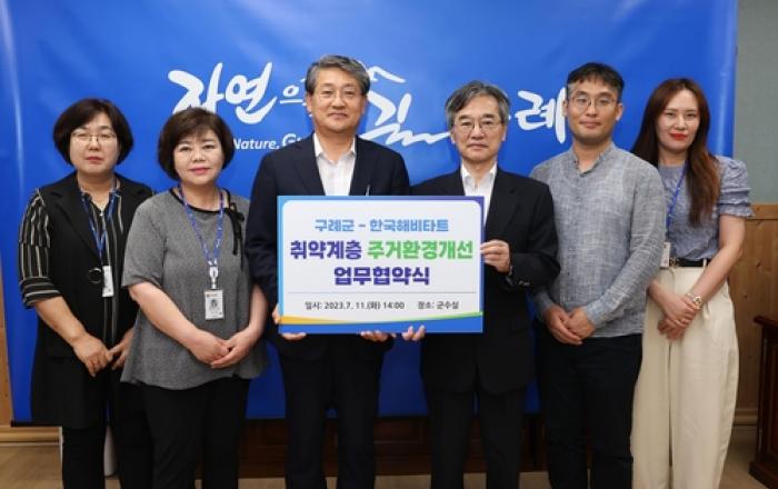 구례군은 지난 11일 구례군청 군수실에서 한국해비타트와 '구례군 취약계층 주거환경개선 업무협약'을 체결했다고 밝혔다. 이번 협약에 따라 구례군과 한국해비타트는 매년 관내 어려운 주거 취약계층의 주거환경개선사업을 추진한다. 구례군은 사업대상자 발굴 및 추천과 사업 진