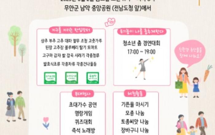 전라남도는 오는 6월 2일 남악 중앙공원에서 친환경 유기농업의 국민적 인식 확산과 친환경 농산물 소비 촉진을 위한 ‘2023 유기농데이 기념행사’를 개최한다고 밝혔다.유기농데이 기념행사는 (사)전남친환경농업협회(회장 유장수)와 친환경농산물자조금관리위원회(위원장 주형로)