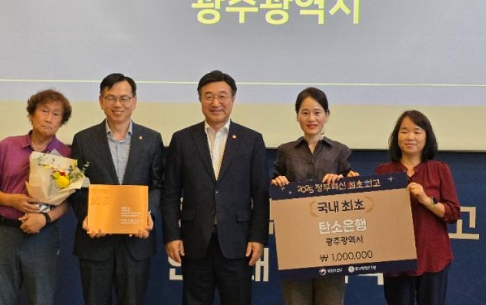 광주시가 지난 2008년부터 시행한 ‘탄소중립포인트제도’가 행정안전부로부터 국내 최초 시행 인증을 받았다.광주광역시(시장 강기정)는 2일 오후 2시 서울 명동 커뮤니티하우스 마실에서 열린 ‘2025 정부혁신 최초‧최고 인증패 수여식’에서 행정안전부로부터 ‘탄소중립포인트