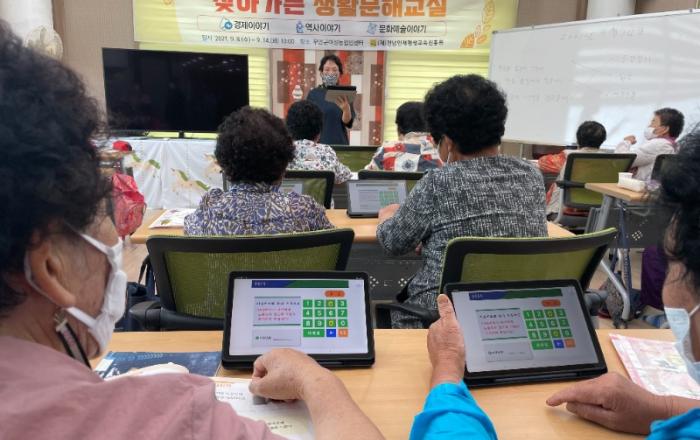 전라남도는 전남인재평생교육진흥원이 문해 학습자 디지털 역량 강화를 위한 공모사업을 통해 완도 등 10개 시군을 선정, 디지털 문해교육 학습비와 태블릿컴퓨터 등 총 2억 원을 지원한다고 밝혔다.읍면동 복지관, 경로당 등의 문해 학습자에게 읽고 쓰는 단순한 한글 교육을 넘