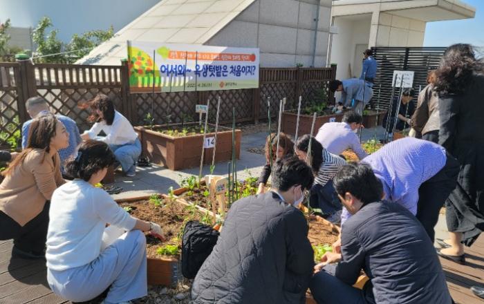 광주광역시(시장 강기정)는 26일 시청사 6층 옥상에 ‘친환경 옥상텃밭’을 개장했다.옥상텃밭은 상자와 화분텃밭 40여 개로 구성돼 있으며 참여를 희망한 부서에서 공동으로 관리할 계획이다.개장식에는 15개 부서 70여 명의 텃밭지기가 참여해 직접 만든 푯말을 텃밭에 설치