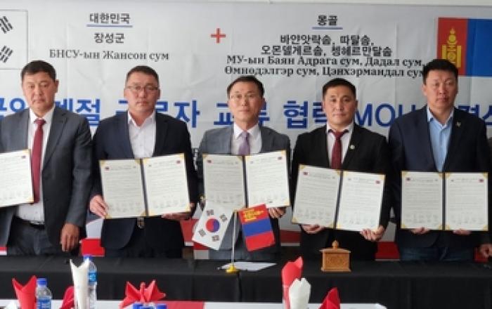 장성군이 지난 11일 몽골을 방문해 4개 자치단체와 농업분야 외국인 계절근로자 업무협약을 체결했다. 협약식에는 김명신 장성부군수, 서춘경·김연수 군의회 의원 등 장성군 관계자와 몽골지역 바얀앗락솜, 따달솜, 오몬델게르솜, 쳉헤르만달솜 자치단체장이 참석했다. 이번
