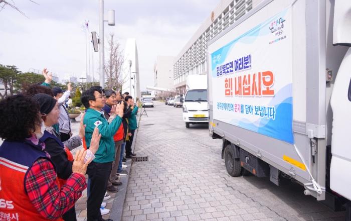 광주시가 경북‧경남‧울산 등 대형산불 피해지역 복구와 피해주민들의 일상 회복 지원을 위해 재해구호기금과 함께 구호물품을 전달한다.광주광역시(시장 강기정)는 경북과 경남, 울산 등 대형산불 피해지역 복구와 이재민 지원을 위해 재해구호기금 2억5000만원을 대한적십자사 광