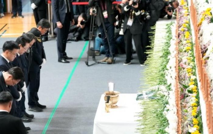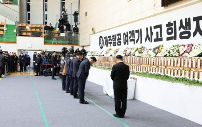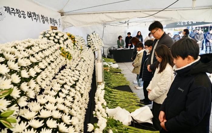 중앙재난안전대책본부는 제주항공 여객기 사고 희생자에 대한 국민적 애도와 추모를 위해 전국 17개 시·도 및 66개 시·군·구에 합동분향소를 설치·운영한다고 밝혔다.행정안전부장관 직무대행 고기동 차관이 30일 오후 전남 무안종합 스포츠파크에 마련된 제주항공 여객기 사고