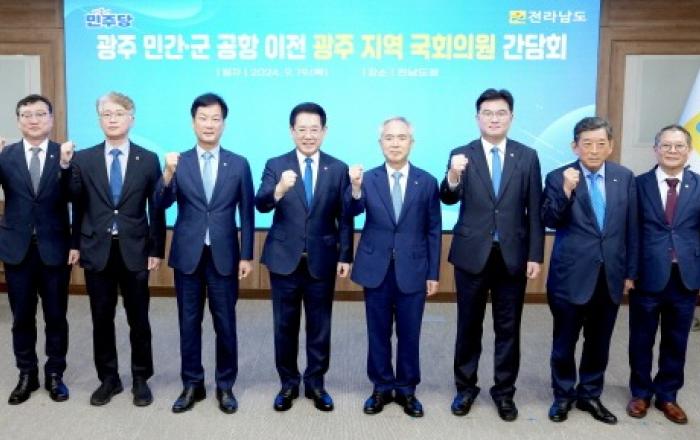 김영록 전라남도지사는 19일 전남도청에서 열린 ‘광주 민간·군 공항 이전 광주지역 국회의원 간담회’에서 공항 이전 문제 해결을 위해 적극적인 협조와 지원을 요청했다.간담회에는 더불어민주당 양부남 광주광역시당위원장과 정준호·박균택 광주지역 국회의원, 한상원 광주상공회의