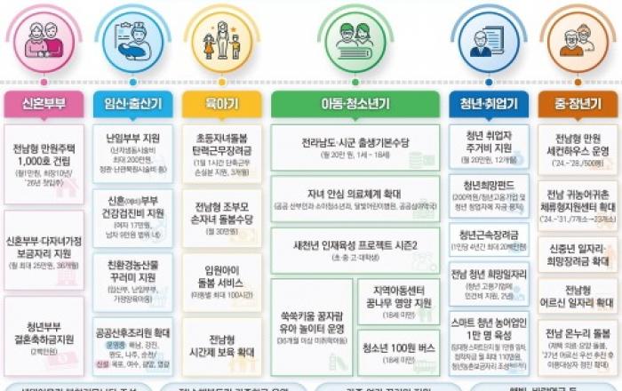 전라남도는 올해를 ‘지방소멸 극복의 원년’으로 삼고, 출생률 반등과 생활인구·외국인 등 새로운 인구 유입으로 지역에 새로운 활력을 불어넣기 위한 ‘인구대전환 전남 프로젝트’를 본격 추진한다고 밝혔다.전남도는 지난 3월부터 15개 실·국과 유관기관, 전문가 등으로 구성