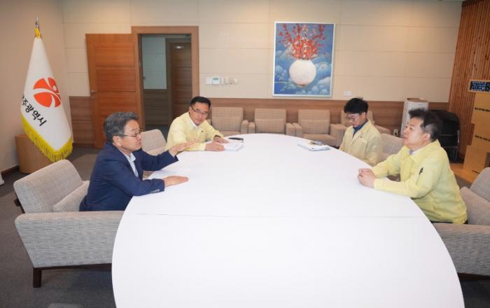 강기정 광주광역시장은 11일 시청 비즈니스룸에서 금호타이어 경영진과 노조 대표를 만나 ‘광주공장 재건 및 함평 이전 노사 합의안’의 실질적인 후속조치를 논의했다.이날 면담은 지난 7월30일 발표된 금호타이어 노사 합의안에 따른 후속 대응 차원에서 마련됐으며 금호타이어