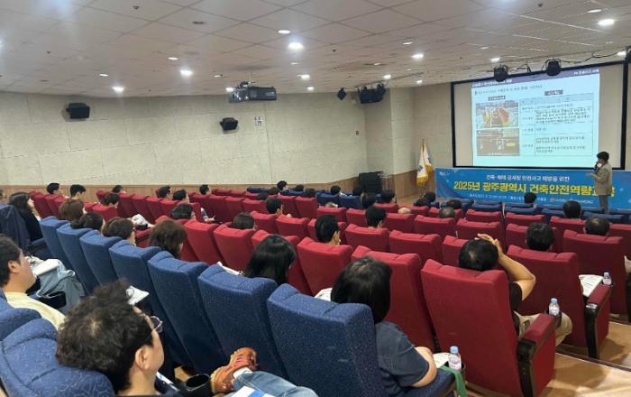 광주광역시(시장 강기정)는 13일 시청 무등홀에서 지역 건축공사 관계자와 기술직 공무원 등 100여명을 대상으로 ‘2025년 건축안전 역량교육’을 실시했다. 이번 교육은 건축공사장과 해체공사장에서 발생할 수 있는 재난사고를 예방하고, 관계자들의 안전의식과 실무 역량을