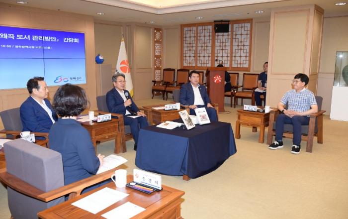 광주광역시(시장 강기정)가 지역 도서관들을 대상으로 역사왜곡 논란 도서에 대한 전수조사를 마쳤다. 이번 조사는 지난 11일 ‘광복 80년, 역사왜곡 도서 관리방안 간담회’ 후속 조치다. 강기정 시장과 이정선 교육감, 임택 구청장협의회장(동구청장) 등은 최근 일부 극우