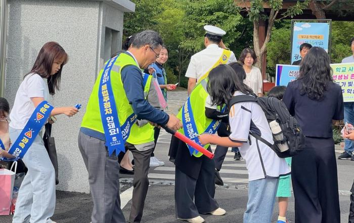 광주서부교육지원청이 지난 26일 오전 8시 광주봉주초등학교 앞에서 유관기관과 함께 2024년 상반기 교통안전 캠페인을 실시했다.28일 서부교육지원청에 따르면 이번 교통캠페인은 어린이보호구역에서 발생하는 교통사고를 예방하고 학생 및 운전자들의 교통안전 의식을 제고하기 위