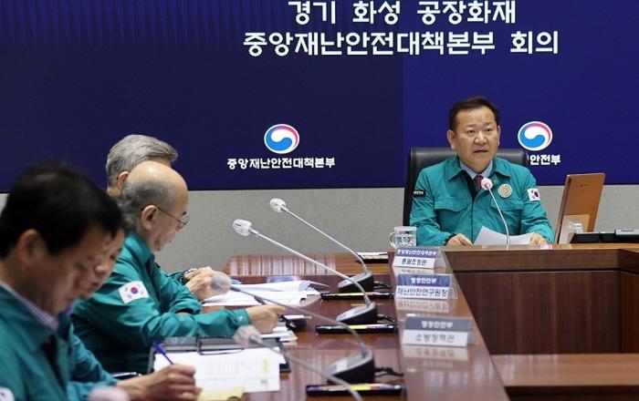 이상민 행정안전부 장관은 지난 24일 발생한 화성 공장화재와 관련해 “관계부처와 민간전문가가 포함된 범정부 TF를 구성해 근본적인 개선방안을 강구해 나가겠다”고 25일 밝혔다. 이 장관은 이날 열린 화성 공장화재 중앙재난안전대책본부(본부장 행안부장관) 회의에서 “