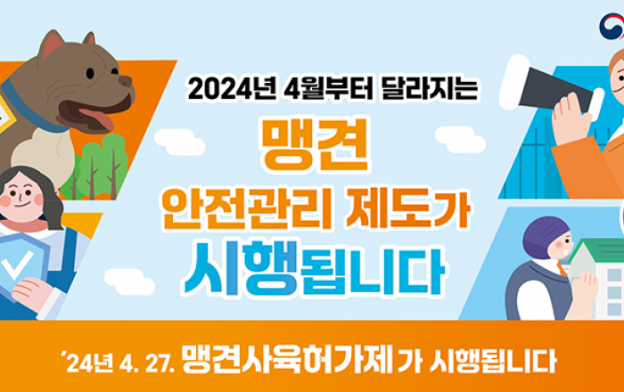 앞으로 개물림 사고 방지 등을 위한 맹견사육허가제가 도입된다. 단, 사람 또는 동물을 공격해 다치게 하거나 죽게 한 경우에는 허가를 취소할 수 있게 된다. 또 승강기, 복도 등의 실내 공용공간에서 맹견관리에 대한 의무가 강화되고 반려동물행동지도사 국가자격도 도입돼