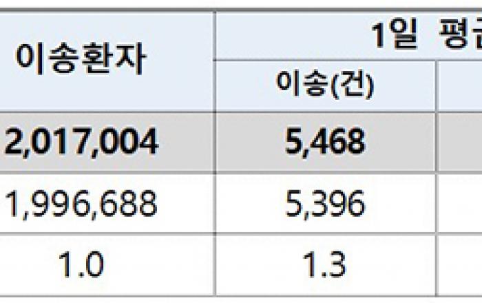 지난해 119구급차 이용현황을 분석한 결과, 우리 국민 201만 7004명이 119구급차를 이용한 것으로 나타났다. 소방청이 14일에 발표한 ‘2023년 119구급차 이용현황’ 분석 결과에 따르면 119구급차 1대당 평균 1228명을 이송했고 국민 대비 구급대원 1명당