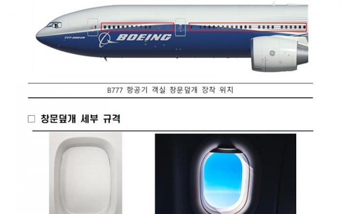 국토교통부는 12일 국내 중소업체인 ㈜지티에이에어로스페이스가 개발한 B777 항공기 객실 창문덮개(Window Shade)에 대해 안전성 인증을 완료하고 국내 항공사에 공급한다고 밝혔다. 지티에이에어로스페이스는 자체 개발한 B777 항공기 객실 창문덮개를 국내 항공사에