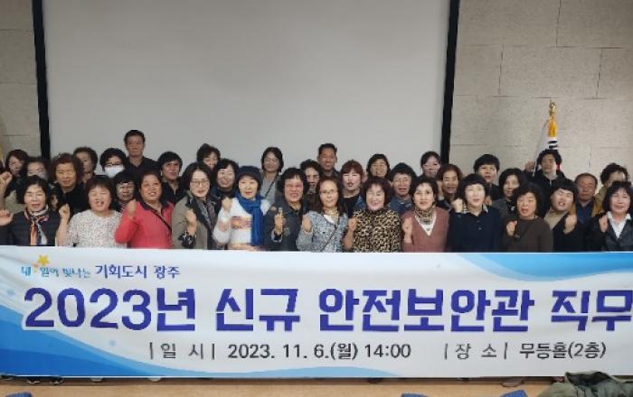 광주광역시(시장 강기정)는 6일 시청 무등홀에서 안전보안관 신규 모집자 및 재교육 대상자 60여 명을 대상으로 ‘2023년 안전보안관 소양교육’을 실시했다.이번 교육은 7대 안전 무시 관행을 근절하고자 운영하고 있는 안전보안관의 활동을 지원하기 위해 마련했다.광주시는