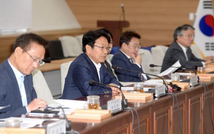 ▲강기정 광주광역시장이 7일 오후 광산구 하남산업단지관리공단 소회의실에서 열린 ‘대유위니아 협력 중소기업 현장간담회’에 참석해 국민의힘 유의동 정책의장과 주기환 광주시당 위원장, 오기웅 중소벤처기업부 차관, 협력업체 대표 등과 대유위니아 계열사에 대한 지원 방안을 논의