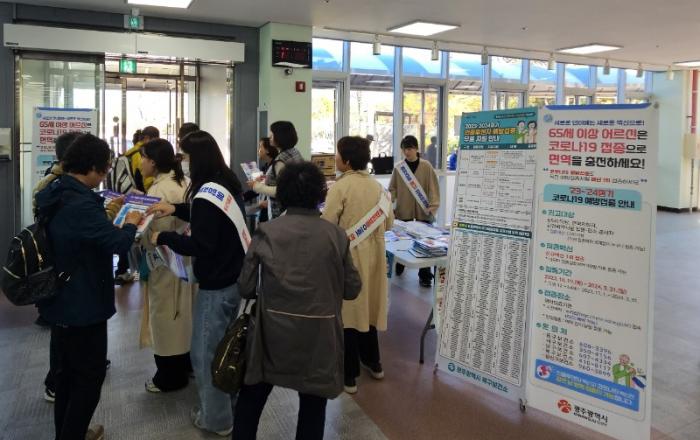 광주광역시(시장 강기정)와 보건소, 감염병관리지원단은 코로나19 예방접종의 중요성을 알리기 위해 지난 27일과 30일 효령노인복지타운, 빛고을노인건강타운에서 ‘코로나19 예방접종 홍보 캠페인’을 벌였다.정부와 광주시는 코로나19의 치명률(0.03%, 8월말 기준)이 계