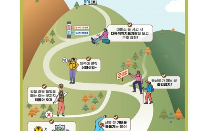 10월은 야외활동하기 좋은 청명한 날씨와 단풍 구경 등으로 산을 찾는 사람이 늘어나면서 등산 사고 발생 위험이 높다. 등산 사고의 주요 원인으로는 발을 헛디디며 발생하는 실족 사고와 길을 잃고 헤매는 조난 사고, 지병 등 신체질환으로 인한 사고 등이 발생한다. 또한 해