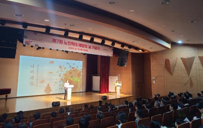 광주광역시(시장 강기정)는 15일 빛고을노인건강타운 공연장에서 ‘제7회 노인학대 예방의 날’ 기념행사를 개최했다.이날 기념행사는 조석호 시의회 환경복지위원장, 손옥수 복지정책과장, 신동이 대한노인회 동구지회장, 노인인권 증진 유공자, 노인복지시설 종사자 등 200여명이