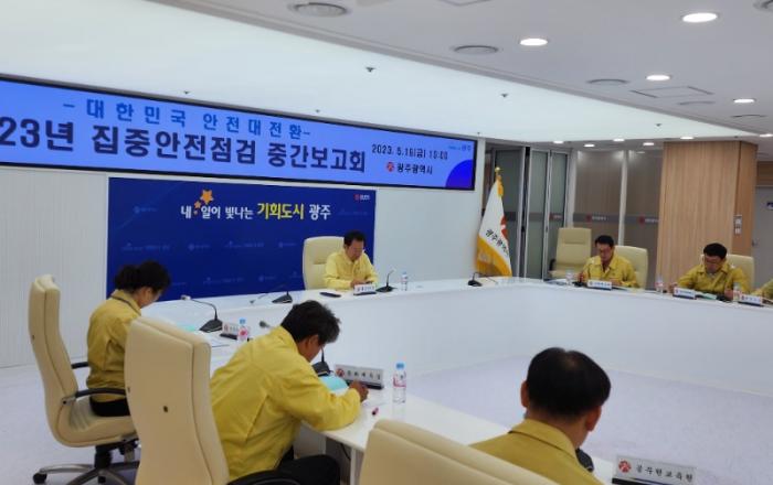 광주광역시(시장 강기정)는 19일 시청에서 ‘대한민국 안전대전환, 2023년 집중안전점검 중간 보고회’를 열고 추진 상황을 점검했다.이번 안전점검은 4월 17일부터 6월 16일까지 진행된다. 당초 점검대상은 763곳이었으나, 성남시 정자교 붕괴사고 이후 지역 내 유사한