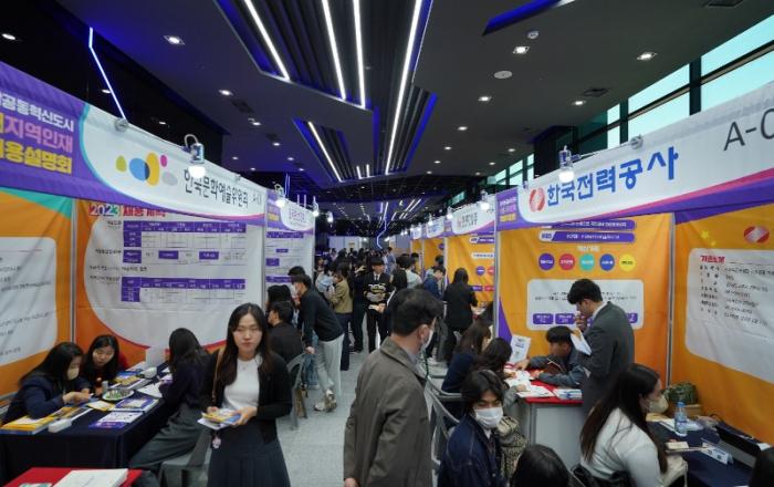 광주광역시(시장 강기정)는 이전공공기관 등과 지역인재의 취업기회를 확대하고 취업역량을 높이기 위해 전남도와 공동으로 개최한 ‘2023년 지역인재 합동채용설명회’가 지역청년 2500여 명이 참여한 가운데 성공적으로 마무리됐다.27일 조선대학교 해오름관에서 열린 채용설명회