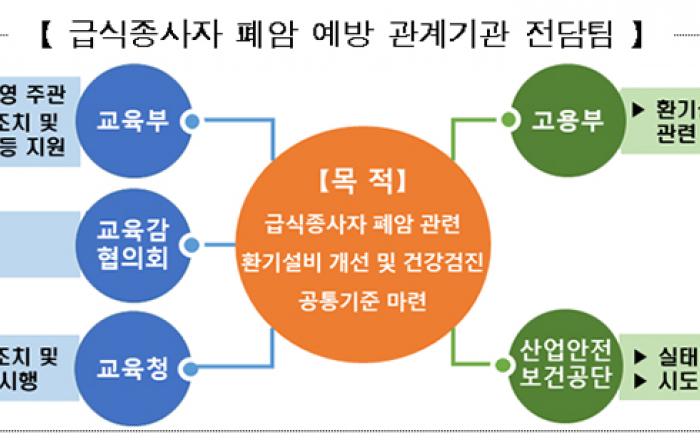 학교 급식 종사자의 건강을 보호하고 안전한 조리실 환경 조성을 위해 급식 조리실 내 환기 설비가 개선된다. 또 발암물질을 유발하는 요리의 경우 오븐 사용으로 전환하는 등 조리방법 개선도 이뤄진다. 교육부는 이 같은 내용의 ‘급식실 조리환경 개선 방안’을 발표했
