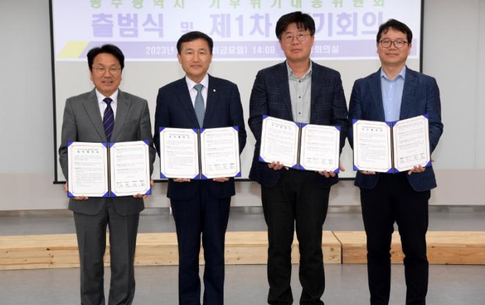 기후위기 대응과 탄소중립 정책의 컨트롤타워인 ‘광주광역시 기후위기대응위원회’가 공식 출범했다.광주광역시(시장 강기정)는 17일 시청 중회의실에서 ‘광주시 기후위기대응위원회 출범식’과 함께 본격 운영에 들어갔다.위원회는 광주시 기후위기 대응을 위한 정책의 기본방향과 탄소