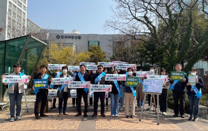 광주광역시(시장 강기정)는 10일 ‘1회용품 없는 날’을 맞아 서구 치평동 평화공원에서 1회용품 줄이기 캠페인을 벌였다. ※ 1회용품 없는 날 : 매달 10일/1(1회용품), 0(제로)광주시는 자치구와 함께 지난해 11월24일부터 확대 강화된 1회용품 사용제한 제도가