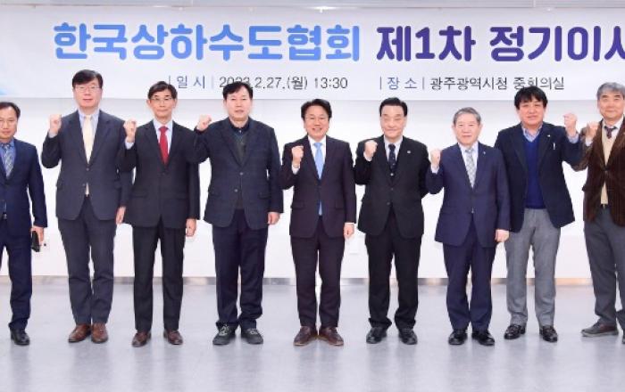 한국상하수도협회장인 강기정 광주광역시장은 27일 시청 중회의실에서 2023년 제1차 정기이사회를 주재하고 안전한 상·하수도 구현 및 국제물산업박람회 성공 개최 등을 논의했다. 이날 회의에서는 한국상하수도협회 발전 방향 및 2023년 사업 추진 방향 등을 공유하고 20