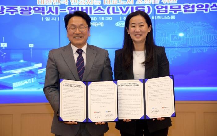 인공지능(AI) 중심도시 광주시가 미국 실리콘밸리 유망벤처기업 엘비스(LVIS)와 손을 잡고 인공지능 기반 디지털 트윈을 활용한 뇌 산업 육성에 도전한다.광주광역시(시장 강기정)와 엘비스는 7일 오후 시청 비즈니스룸에서 ‘광주 인공지능 산업생태계 조성을 위한 업무협약’