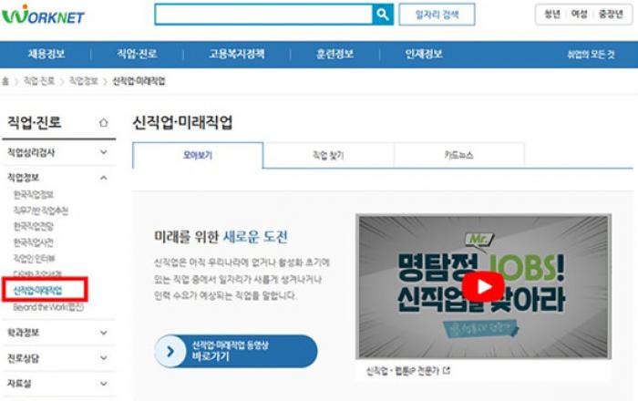 워크넷에 ‘신직업’ 섹션을 새로 만들어 신직업과 미래직업 정보를 본격적으로 서비스하고, 사용자 편의를 위한 검색 기능도 제공한다. 한국고용정보원은 워크넷에 신직업 및 미래형 직업에 대한 직업의 내용, 현황, 전망, 진출하는 방법 등의 상세정보를 9개 산업과 4개