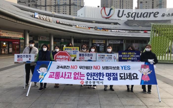 광주광역시(시장 강기정)는 19일 광주종합터미널에서 시민 생명보호와 교통안전을 위한 교통사고 줄이기 캠페인을 벌였다.이날 캠페인에는 광주녹색어머니회 등 시민단체가 참여해 귀성객과 시민을 대상으로 보행자·운전자 교통안전수칙 준수를 당부하고, 시민들에게 과속·무단횡단·음주