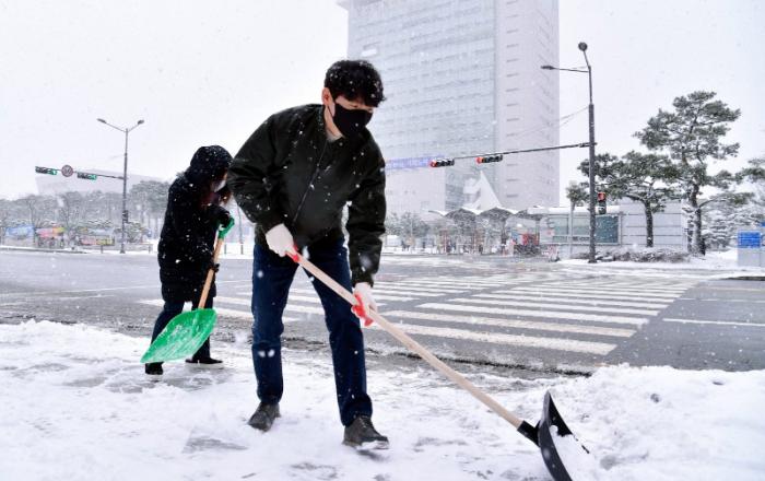 22일부터 23일 사이 광주지역에 30㎝ 넘는 폭설이 내린 가운데 민·관·군 등 지역 공동체가 총출동, 눈치우기에 힘을 모으고 있다.제설에는 광주광역시(시장 강기정)의 가용 인력과 장비가 총동원된 가운데 민간단체에 이어 군부대의 장비도 투입됐다.군부대는 23일 시 자연