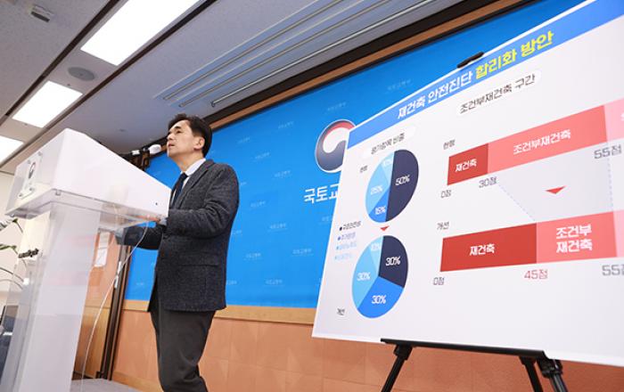 재건축 안전진단 관련 규제가 대폭 개선된다. 구조안전성 점수의 비중이 전체의 50%에서 30%로 줄어들고 주거환경, 설비노후도 점수 비중은 상향된다. 이에 따라 주차공간 부족·층간소음 등으로 주거환경이 나쁘거나 배관 설비가 낡은 아파트의 재건축 가능성이 커질 전망