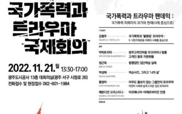 광주트라우마센터는 오는 21일 ‘2022 국가폭력과 트라우마 국제회의’를 서구 치평동 광주도시공사 대회의실에서 개최한다. 광주시는 국가폭력 피해자의 트라우마 치유를 위한 전문 치유기관으로 2012년 10월 국내 최초로 광주트라우마센터를 개소해 올해 10주년을 맞았다.이