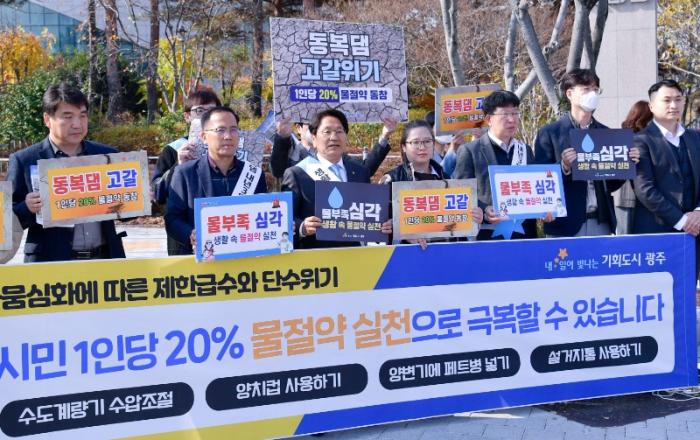 강기정 광주광역시장은 “물 부족 위기에 따른 사전비상행동단계에 돌입한다”고 밝혔다.강 시장은 17일 오후 시청에서 열린 확대간부회의에서 “급수통계 집계를 시작한 1999년 이래 처음으로 상수원 저수량이 50% 미만인 점, 국가가뭄예경보 단계가 심한 가뭄 상태인 경계단계